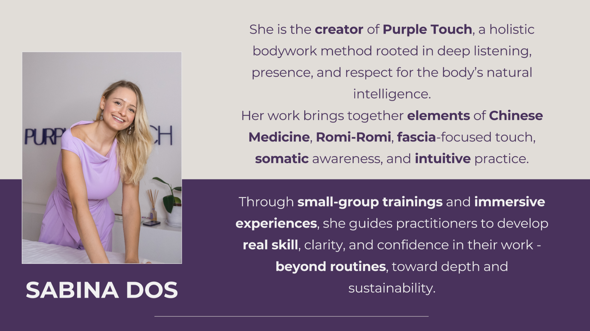 PURPLE TOUCH® is a unique holistic bodywork method.